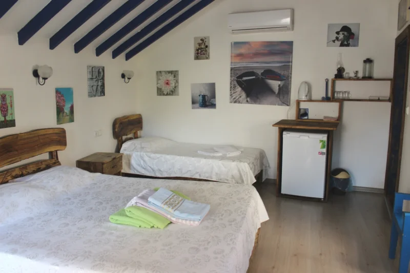 Mavi beyaz konseptle tasarlanan bu özel odamız, ferah, huzurlu ve estetik bir konaklama deneyimi sunmak amacıyla özenle hazırlanmıştır. Doğallık ve şıklığın bir araya geldiği mimarisiyle, misafirlerine hem sıcak hem de dinlendirici bir atmosfer sunar. Odamızın dış kaplaması tamamen eskitilmiş ahşaptan oluşmakta olup, kaplama ile iç yapı arasında kullanılan yüksek kaliteli izolasyon malzemesi sayesinde dört mevsim konforlu bir kullanım sağlamaktadır. İç kısım ise modern bir dokunuş olarak alçıpan ile kaplıdır.