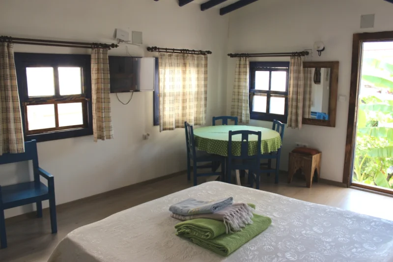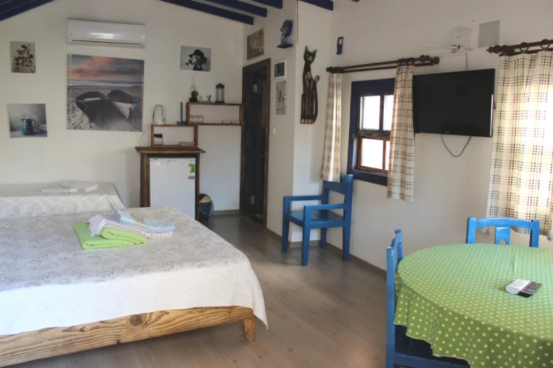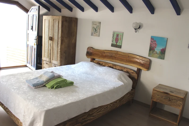 Doğal malzemelerle şekillenen, mavi beyaz tonların huzur veren etkisini yansıtan bu odamız; sakin, konforlu ve estetik bir tatil arayan misafirler için mükemmel bir seçenektir.
