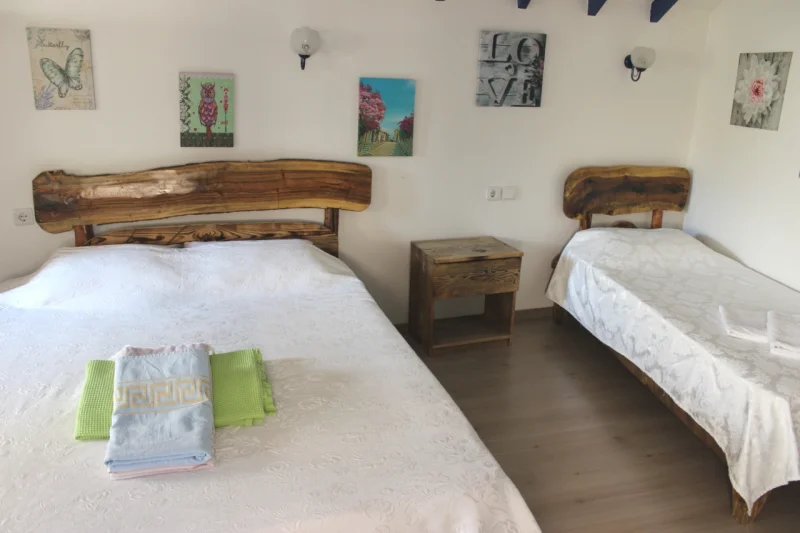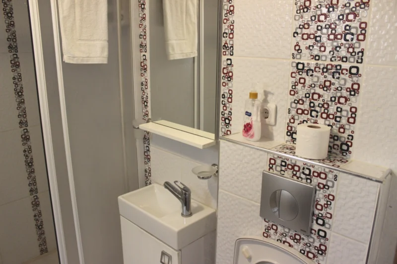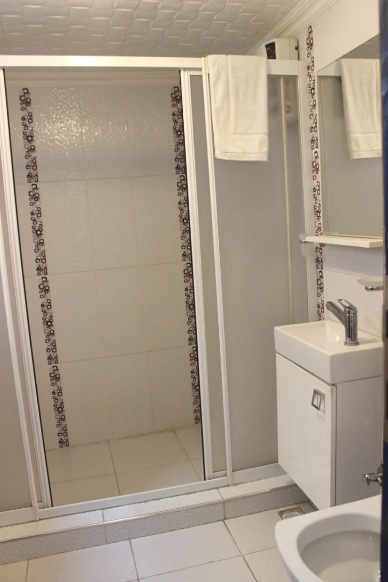Odamızda yer alan modern ve geniş duşakabinli banyo, çağdaş tasarımıyla rahat ve kullanışlı bir alan sunar. Yatak düzeni, 1 adet çift kişilik yatak ve 1 adet tek kişilik yatak şeklinde planlanmış olup, aileler veya arkadaş grupları için ideal bir konaklama imkânı sunmaktadır.